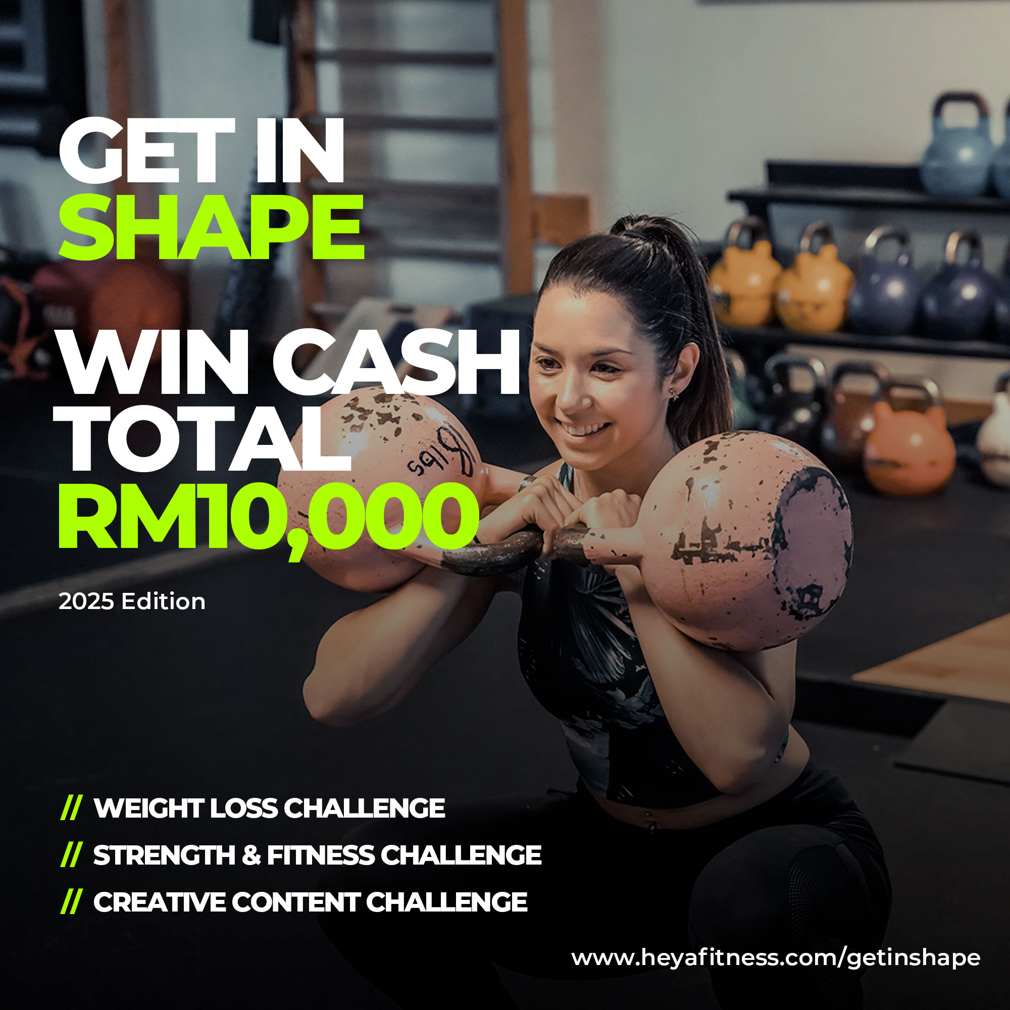Cabaran ini hanya terbuka untuk peserta-peserta yang mendaftar kelas kecergasan (Fitness Group Training) di bawah kendalian gym studio Heya Fitness bermula dari January 2025.